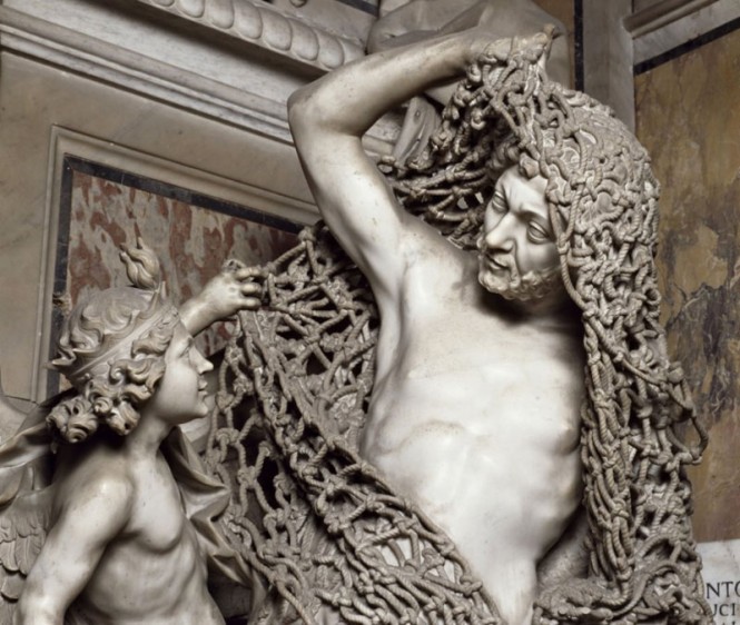 Quando entriamo nella Cappella San Severo a Napoli, restiamo certamente ammirati dalla leggerezza di quel velo che copre il corpo del Cristo, adagiato su una superficie marmorea. Quel velo ci ispira un’idea di pace, un senso di tranquillità, nonostante il carattere tragico della scena. Ma sollevando lo sguardo alle altre sculture che ornano la Cappella, ci imbattiamo nella figura di un uomo che si dibatte in una rete, cercando di divincolarsi dai lacci che lo imprigionano: si tratta del Disinganno.