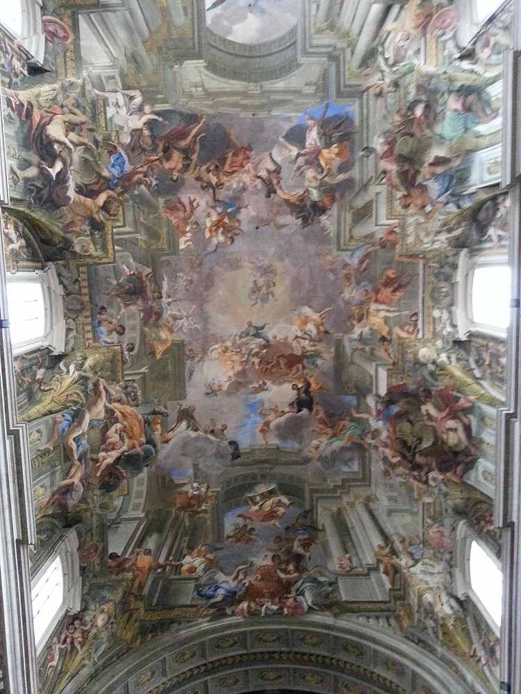 Se ti capita di entrare nella Chiesa di Sant’Ignazio a Roma, alza la testa e cerca il punto di vista giusto da cui guardare. Il soffitto è scomparso, vedrai le finestre che ti fanno scorgere direttamente il cielo: non c’è più ostacolo o barriera. Ma vedrai anche tante piccole fiammelle. È il fuoco della Parola di Dio che Ignazio chiedeva ai suoi figli, i gesuiti, di portare nel mondo. Negli angoli della volta, infatti, sono raffigurate quattro donne, che rappresentano i quattro continenti, quelli conosciuti all’epoca, le terre in cui portare il fuoco. E infatti il dipinto della volta è la trasposizione del versetto del Vangelo di Luca che corre intorno alle pareti: «Ignem veni mittere in terram, et quid volo nisi ut accendatur», sono venuto a portare il fuoco sulla terra, e che cosa voglio se non che sia già acceso (Lc 12,49).
