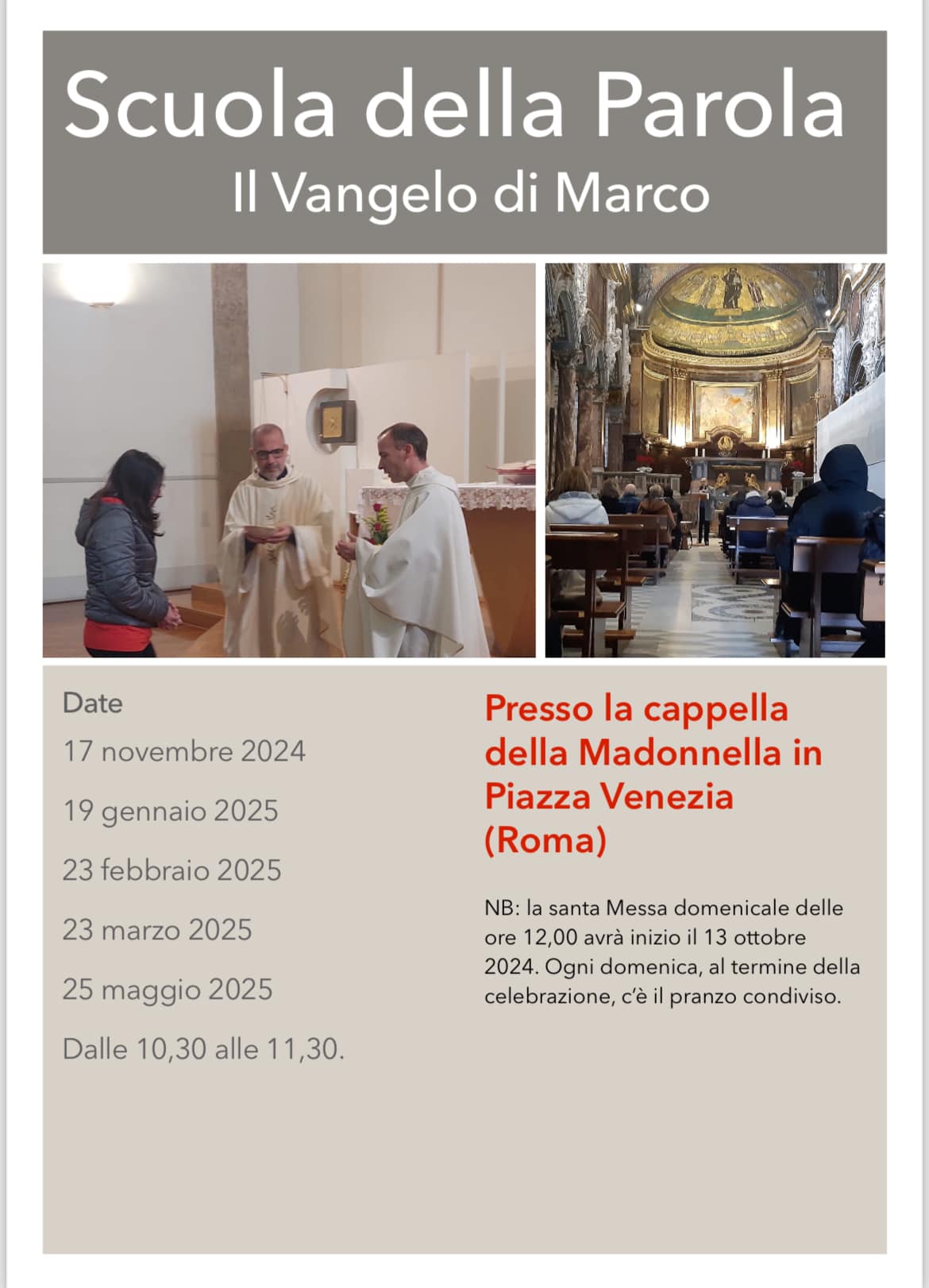 attivitàScuola della Parola 2024-2025: il Vangelo di Marco da Gaetano Piccolo12/11/2024 Lascia un commento in Scuola della Parola 2024-2025: il Vangelo di Marco Condividi: Condividi su X (Si apre in una nuova finestra) X Condividi su Facebook (Si apre in una nuova finestra) Facebook Condividi su WhatsApp (Si apre in una nuova finestra) WhatsApp Condividi su Telegram (Si apre in una nuova finestra) Telegram Altro Invia un link a un amico via e-mail (Si apre in una nuova finestra) E-mail Mi piace Caricamento...