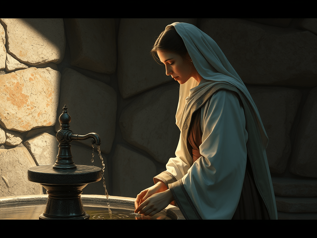 È un incontro che avviene a un orario insolito, a mezzogiorno, quando, a causa del sole alto, si preferisce restare in casa o all’ombra. Eppure questa donna va a prendere stranamente l’acqua al pozzo proprio in quell’ora, sottoponendosi a una fatica durissima e rischiando di riportarsi a casa un’acqua già calda. Possiamo immaginare che se sceglie di andare al pozzo proprio a quell’ora è esattamente per non incontrare nessuno! Non vuole essere vista, perché probabilmente la gente conosce la sua storia, una storia fatta anche di errori, una storia che la gente, come sempre avviene, ha già giudicato e condannato.